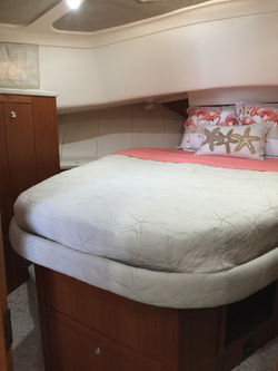 "On Missions" is a 39 foot Mainship Trawler. She cruises between 7-10 knots and is very stable and comfortable. There are deep walkways with handrails all the way around the boat for safe maneuvering while underway. The large cockpit is the perfect place to enjoy the sun and features a walk through transom door to a 4 foot swim platform. The large platform makes entering and exiting the water or dinghy a breeze. Heading up to the flybridge there is a full staircase with hand rail. Once up on the huge flybridge you have a 360* spectacular view completely undercover. The flybridge will seat 10 comfortably and has a dinning table that seats 4. There is a Bluetooth stereo system for your choice of music.